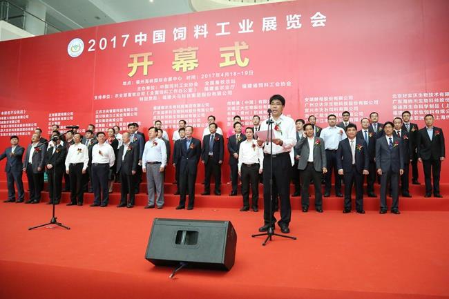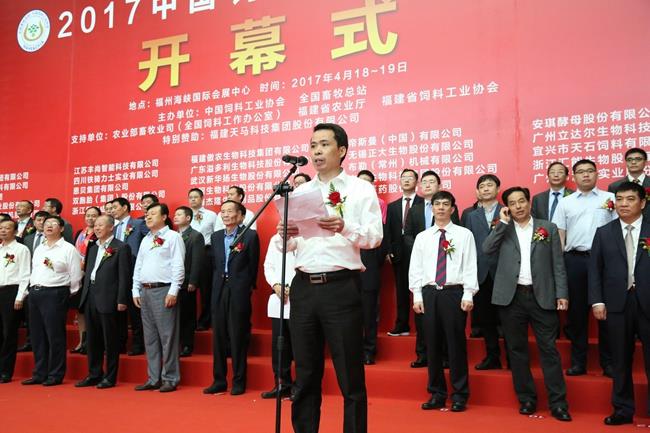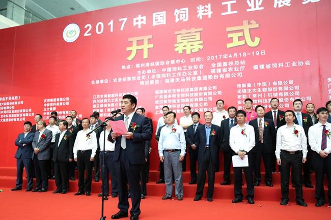 天馬科技訊 4月18日-19日,由中國飼料工業(yè)協(xié)會、全國畜牧總站主辦,福建天馬科技集團(tuán)股份有限公司(以下簡稱“天馬科技”)特別贊助的行業(yè)盛會——2017中國飼料工業(yè)展覽會暨畜牧業(yè)科技成果推介會在福建省福州海峽國際會展中心隆重舉行。農(nóng)業(yè)部副部長于康震,農(nóng)業(yè)部原副部長、中國飼料工業(yè)協(xié)會顧問高鴻賓,中國飼料工業(yè)協(xié)會會長、中國工程院院士李德發(fā)等領(lǐng)導(dǎo),以及包括天馬科技、海大集團(tuán)、大北農(nóng)、新希望六合等上市公司在內(nèi)的近400家國內(nèi)外公司參展和數(shù)萬名客商代表、行業(yè)人士參加展會。中國飼料工業(yè)協(xié)會副會長單位、本屆唯一的特別贊助單位天馬科技,以安全、高效、環(huán)保的特種水產(chǎn)飼料及技術(shù)解決方案亮相此次展會,吸引了來自全國各地的客戶,上下游合作伙伴及同行的目光。中國飼料工業(yè)協(xié)會副會長、天馬科技陳慶堂董事長應(yīng)邀出席展會,并在4月18日舉行的展會開幕式上代表全國飼料企業(yè)致辭。