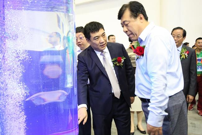 上圖為陳慶堂董事長向于康震副部長介紹天馬科技產(chǎn)品及相關(guān)水產(chǎn)品