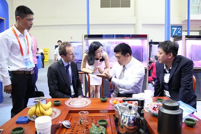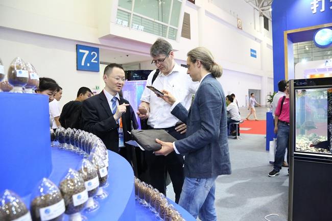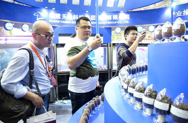 本次展會,天馬科技展館一開館,展臺前就熱鬧非凡,人頭攢動。天馬科技展館設(shè)計獨(dú)到,簡潔明快的建筑線條,海洋藍(lán)配上高效節(jié)能、環(huán)保、安全、舒適的綠色照明體系,充滿活力的鰻魚、石斑魚、大黃魚、甲魚、龜、虹鱒等各類特種水產(chǎn)品形象展示無不彰顯了集團(tuán)高端、大氣的企業(yè)形象,讓天馬科技展館賺足了眼球,成為全場最“吸睛”的展位。各大媒體記者,各大參展商、供應(yīng)商、客戶,以及觀眾紛紛在天馬科技展館駐足流連,并不時向現(xiàn)場的天馬科技工作人員咨詢產(chǎn)品相關(guān)情況。