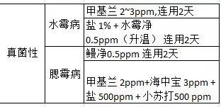4、注意觀察及早發(fā)現(xiàn)及時(shí)對(duì)癥治療。鰻魚(yú)健康時(shí)活動(dòng)良好,發(fā)病時(shí)活動(dòng)異常、食欲下降,要及時(shí)檢查確診。檢查內(nèi)容包括皮膚粘液、內(nèi)臟器官(肝、膽、腸、胃、腎)、鰓組織(主要檢查寄生蟲(chóng)、霉菌、細(xì)菌),另處還可通過(guò)肉眼觀察以及實(shí)踐經(jīng)驗(yàn)進(jìn)行判斷,有的放矢地選擇藥品對(duì)癥下藥。如鰻魚(yú)發(fā)生鰓霉病要用亞甲基蘭而不能用抗菌素。鰻魚(yú)常發(fā)生的病害及治療方法筆者總結(jié)如下表。