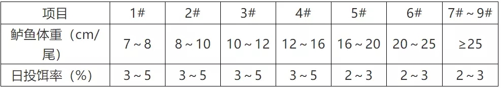 ? 適時(shí)轉(zhuǎn)換合適飼料,并在換料時(shí)以兩種規(guī)格飼料混合投喂,以減少養(yǎng)殖魚大小差異。