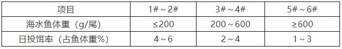 ? 根據(jù)網(wǎng)箱或池塘中海水魚規(guī)格及數(shù)量,參考投餌參考表中推算投餌量,再根據(jù)天氣、水溫、水質、海水魚攝食及健康狀況等予以適當調整。