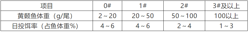 ? 根據(jù)黃顙魚規(guī)格及數(shù)量,參考投餌參考表中推算投餌量,再根據(jù)天氣、水溫、水質(zhì)、餌料臺觀察情況、黃顙魚攝食及健康狀況等予以適當(dāng)調(diào)整。