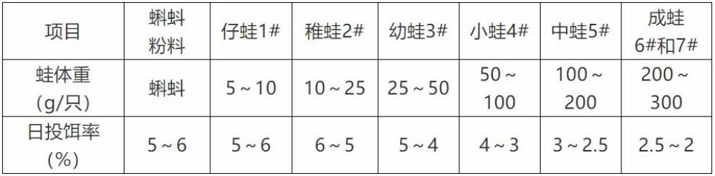 ? 根據(jù)蛙規(guī)格及數(shù)量,參考投餌參考表中推算投餌量,再根據(jù)天氣、水溫、水質(zhì)、餌料臺觀察情況、蛙攝食和健康狀況等予以適當調(diào)整。