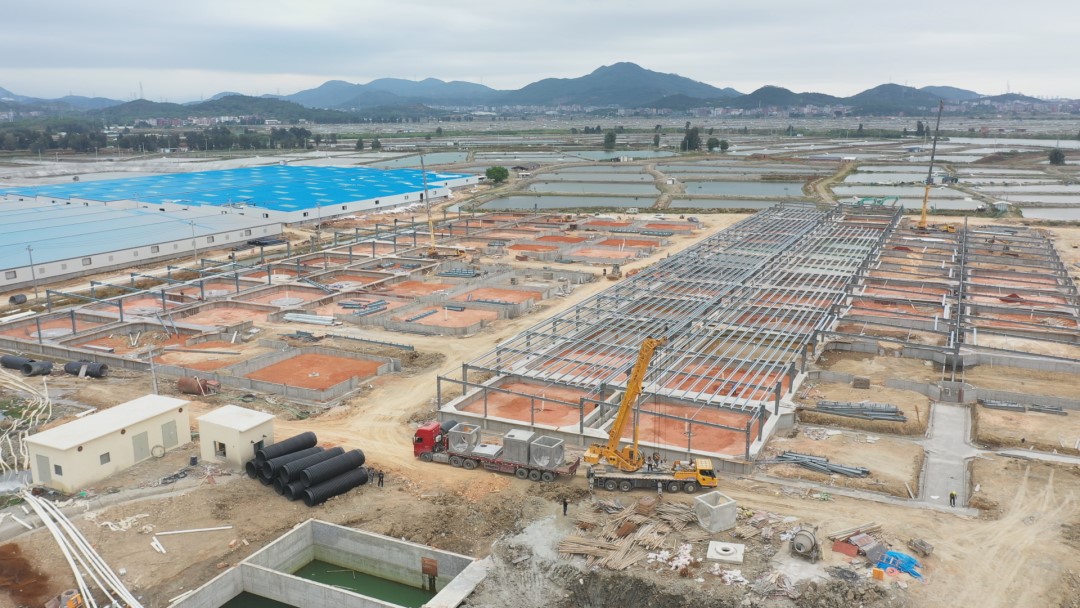 昨日,位于福清市的星馬·福清鑫魚綠色生態(tài)循環(huán)水養(yǎng)殖基地(白鴿山萬畝產(chǎn)業(yè)基地)建設(shè)現(xiàn)場,“扎根三福之地,打造‘中國鰻谷’”的標(biāo)語格外醒目。這里有成片的工廠化循環(huán)養(yǎng)殖車間,還有挖掘機、運料車往來穿梭,項目建設(shè)如火如荼。